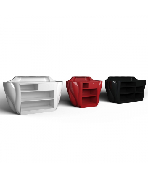Стойка администратора "Sea Urchin 144" - с изогнутым декоративным фасадом. Корпус и наполнение стойки с артикулом G-м60003186 выполнены в ламинате. Фасад выполнен из пластика в черном, красном или белом цвете.