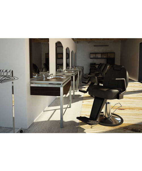 Сдержанность и комфорт. Кресло удобно для обслуживания мужчин, а также полных клиентов