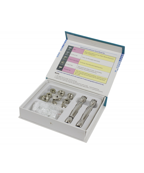 Алмазная микродермабразия – механическая чистка кожного покрова с применением насадок с абразивным покрытием. Этот тип пилинга предназначен для поверхностной, средней и глубинной чистки (до базальной мембраны). Глубина воздействия зависит от выбора насадки с определенной толщиной алмазного напыления. Укомплектован комбайн девятью разными насадками. Микродермабразия позволяет удалить загрязнения и ороговевший слой эпидермиса, устранить пигментные пятна, уменьшить количество и глубину морщин, убрать рубцы и растяжки, сгладить рельеф и цвет кожи. Данная методика пользуется большим спросом в косметологических салонах, так как позволяет устранить ряд эстетических проблем.