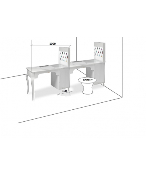 Двойной маникюрный стол "505" – удобная модель для тех студий маникюра, где необходимо сэкономить пространство, но в то же время обеспечить комфортную работу для всех мастеров. Стол выполнен как единое целое, но две его половины полностью дублируют друг друга. Чтобы было удобнее, между столешницами есть высокая перегородка с подставками для лаков. Дополнительно можно установить вытяжки под каждый столик. Также есть возможность изготовления из глянцевого ДСП и в различных цветах по желанию клиента. Обязательно рассмотрите данную модель для своего салона или кабинета.