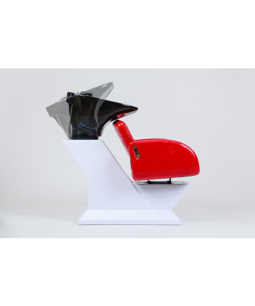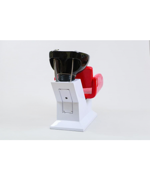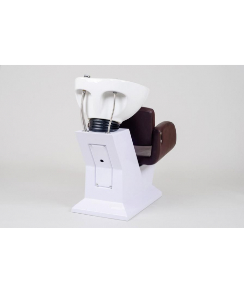 Парикмахерская мойка SD-6682 с глубокой керамической раковиной на стальной базе и удобным креслом.