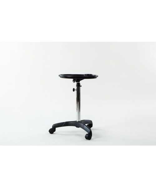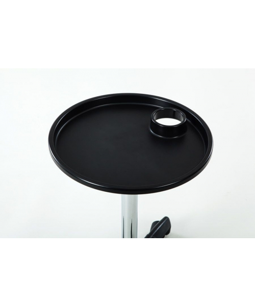 Компактная тележка для аксессуаров c одним ярусом для размещения необходимых принадлежностей и инструментов. Столешница с отверстием для фена: продуманная конструкция облегчает работу парикмахера, все аксессуары находятся под рукой.