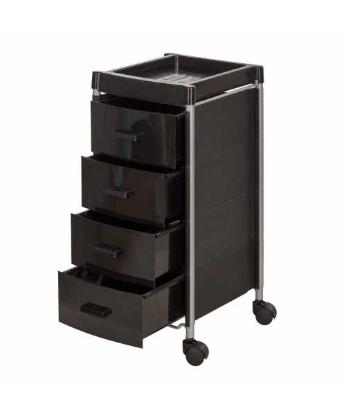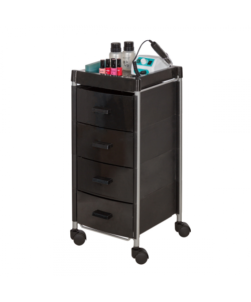 Тележка парикмахерская "Алана-04" - укомплектована четырьмя вместительными ящиками, где специалист может хранить инструменты в полном порядке. На крышке удобно поставить аппарат и сопутствующие инструменты, необходимые в рабочем процессе. Встроенные колеса помогают перемещать тележку по рабочей зоне без особых усилий.