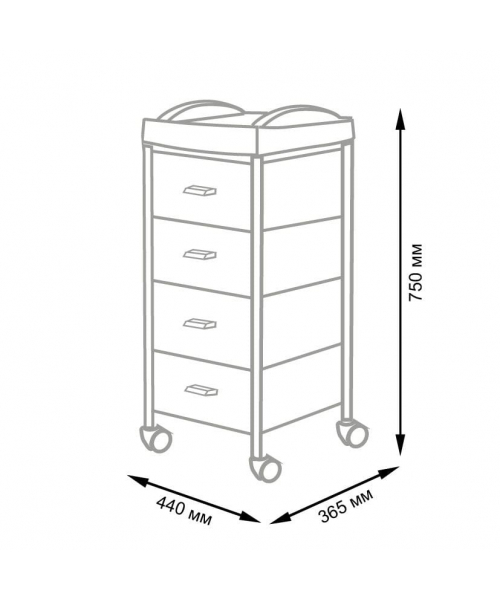 Тележка парикмахерская "Алана-04" - укомплектована четырьмя вместительными ящиками, где специалист может хранить инструменты в полном порядке. На крышке удобно поставить аппарат и сопутствующие инструменты, необходимые в рабочем процессе. Встроенные колеса помогают перемещать тележку по рабочей зоне без особых усилий.