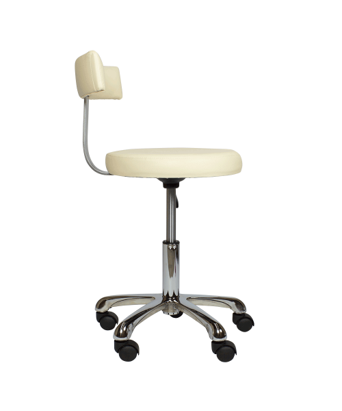 Он отлично подойдет парикмахерам, визажистам, мастерам по маникюру и педикюру, а также другим специалистам. Высота уровня сиденья регулируется с помощью пневматики от 445 до 575 мм. Данная модель комплектуется эргономичным сиденьем круглой формы и высокой анатомической спинкой, которые соединены между собой надежным каркасом из полированного металла. Для производства мягких элементов применяются такие высококачественные материалы: